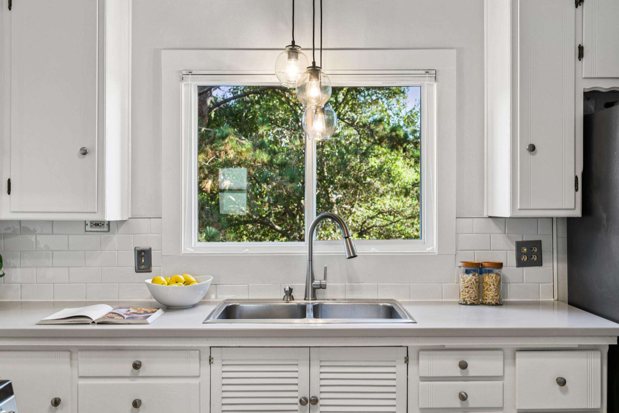 The spacious eat-in kitchen is the heart of the home, with stainless steel appliances, whimsical pendant lighting, tile backsplash, and ample cabinetry for storage. With new flooring, fresh paint, and space to create a breakfast nook, this kitchen was designed for those who love to cook and gather. The stunning bath has been completely renovated with stone surround shower, newer vanity, a spa-style shower head, modern lighting and stainless steel accents. The gorgeous flooring completes the spa-like experience!