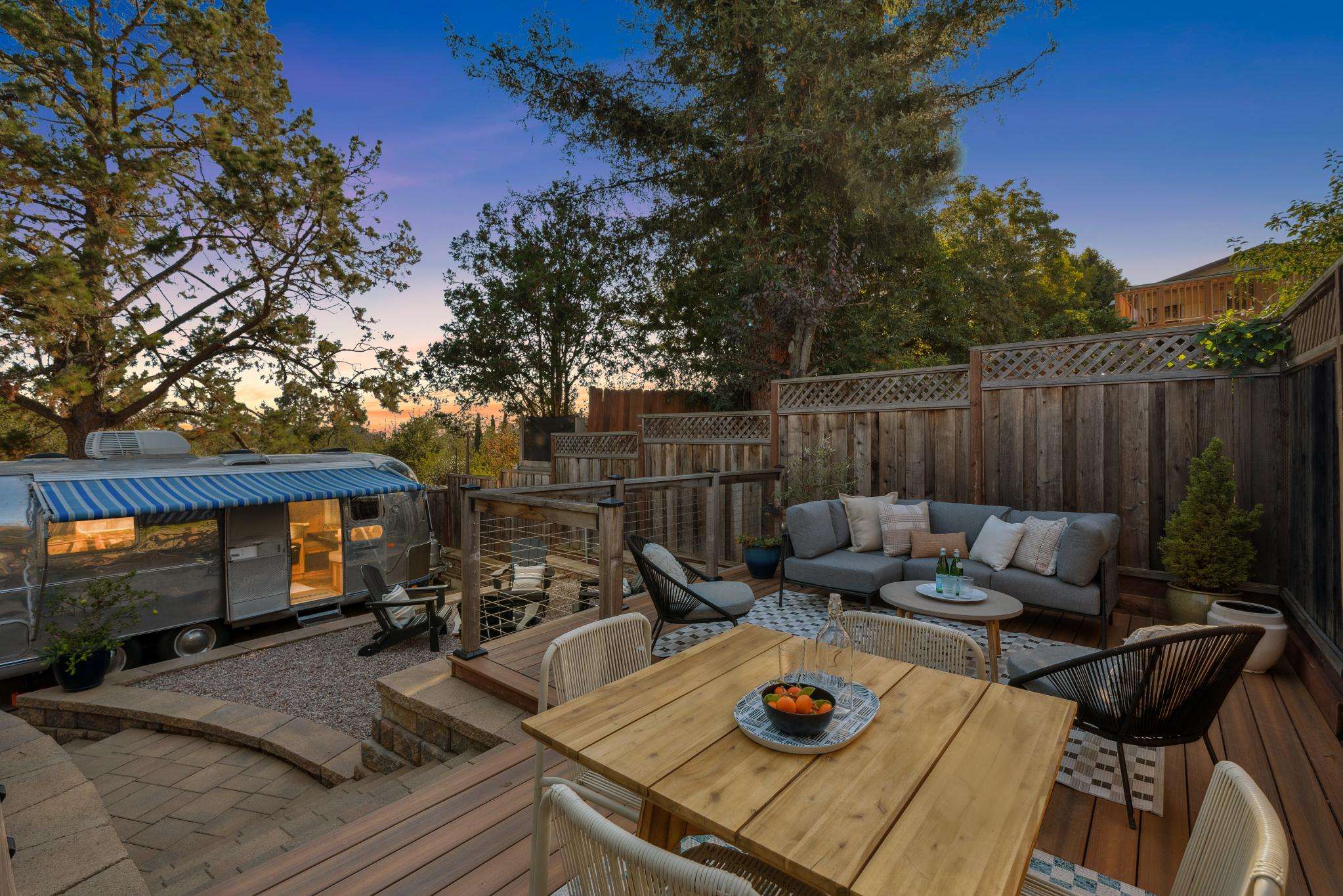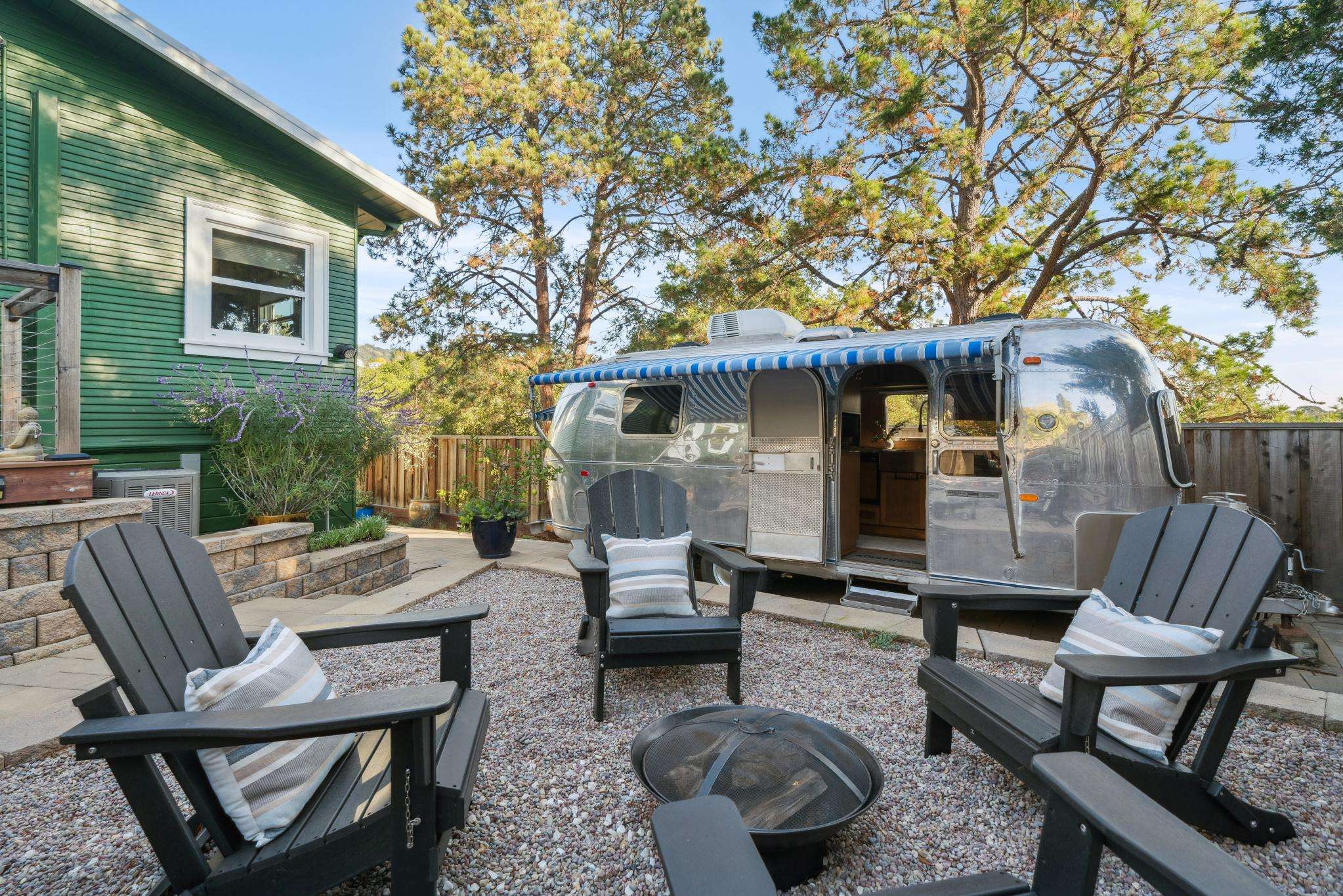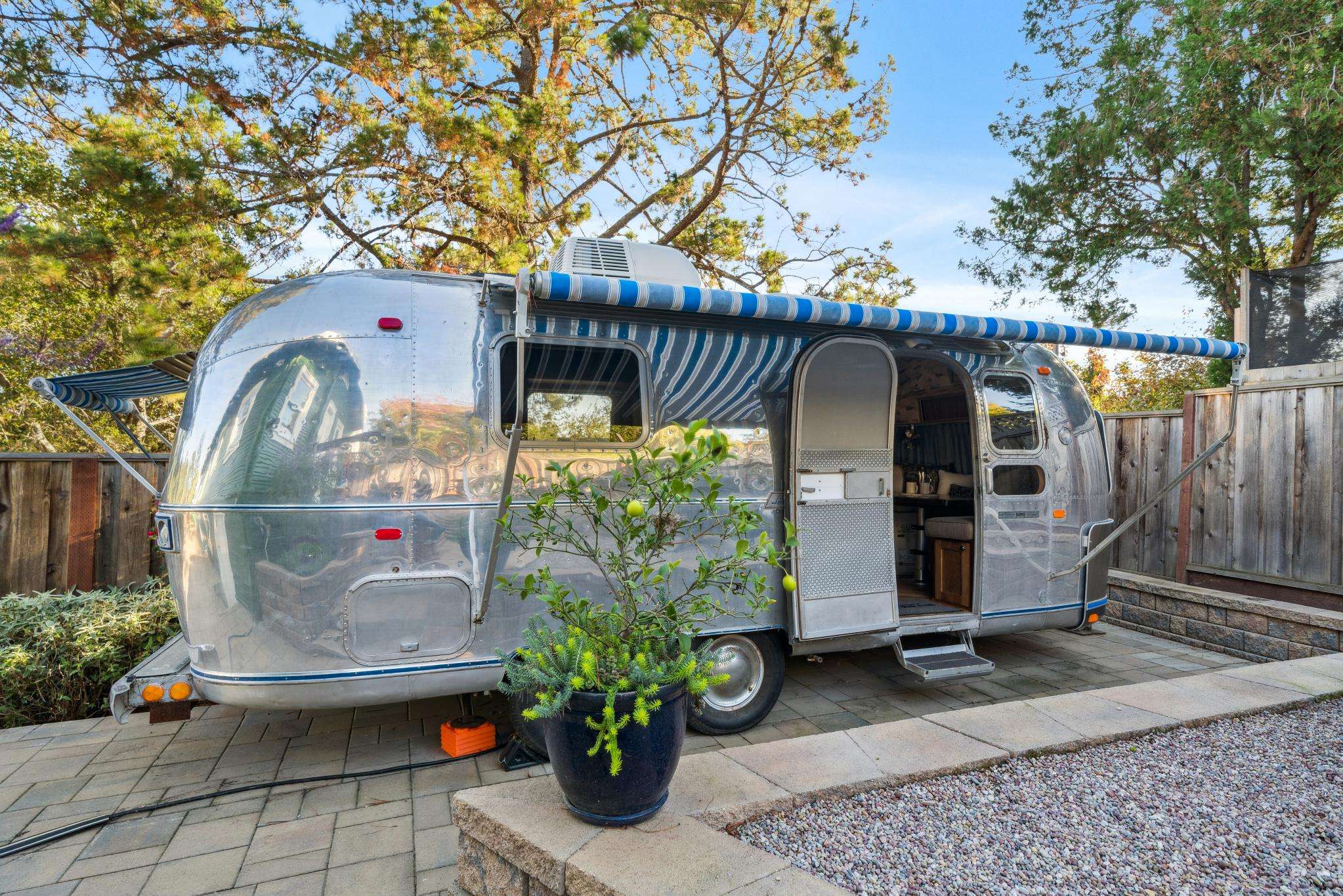Step outside to the extensively landscaped backyard. The patio area is perfect for outdoor dining and entertaining under the stars. Prepare to be impressed by an authentic, restored Airstream! It comes complete with shower, toilet, kitchenette, refrigerator, and a full-sized bed. It’s ideal for guests, or even a unique home office.