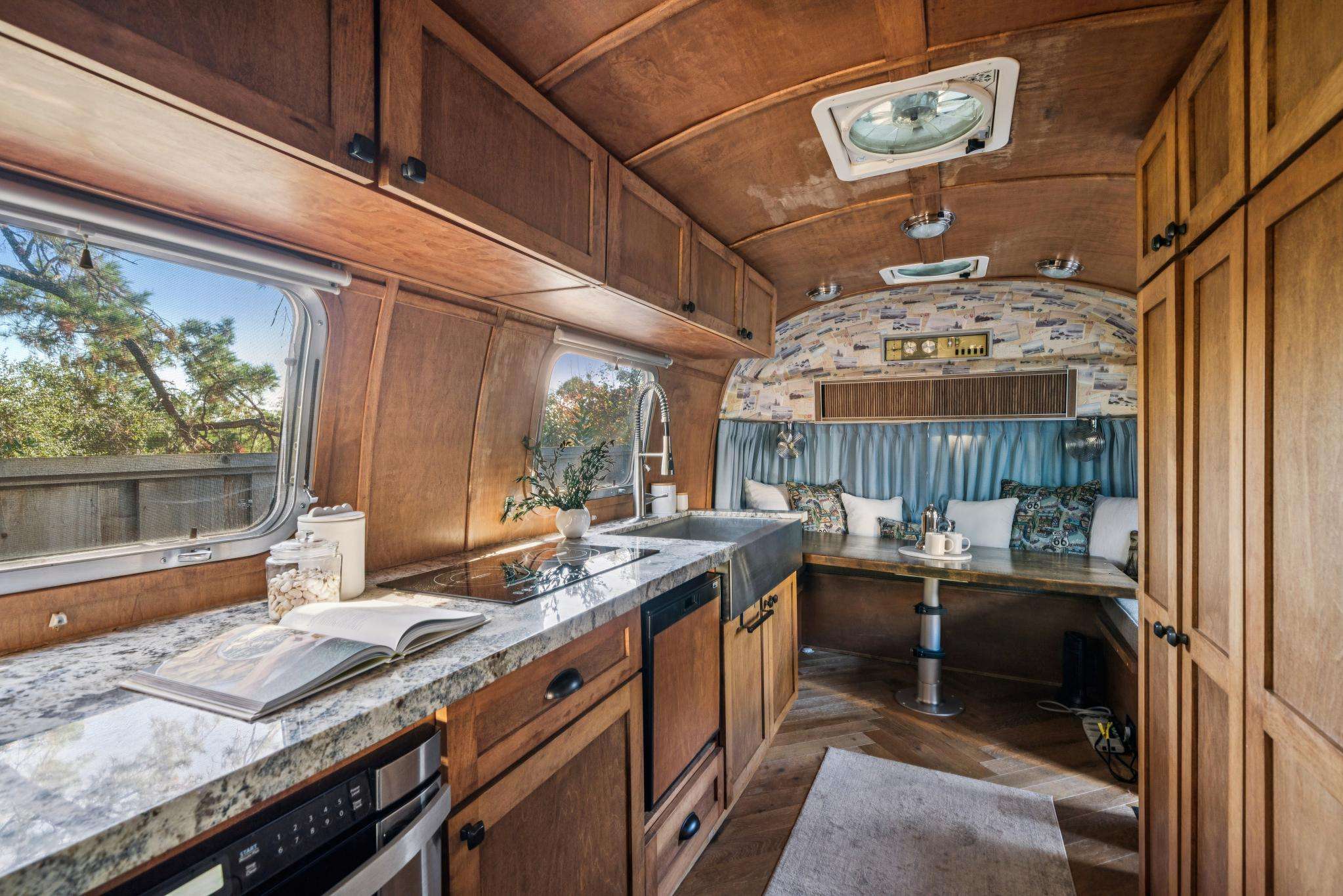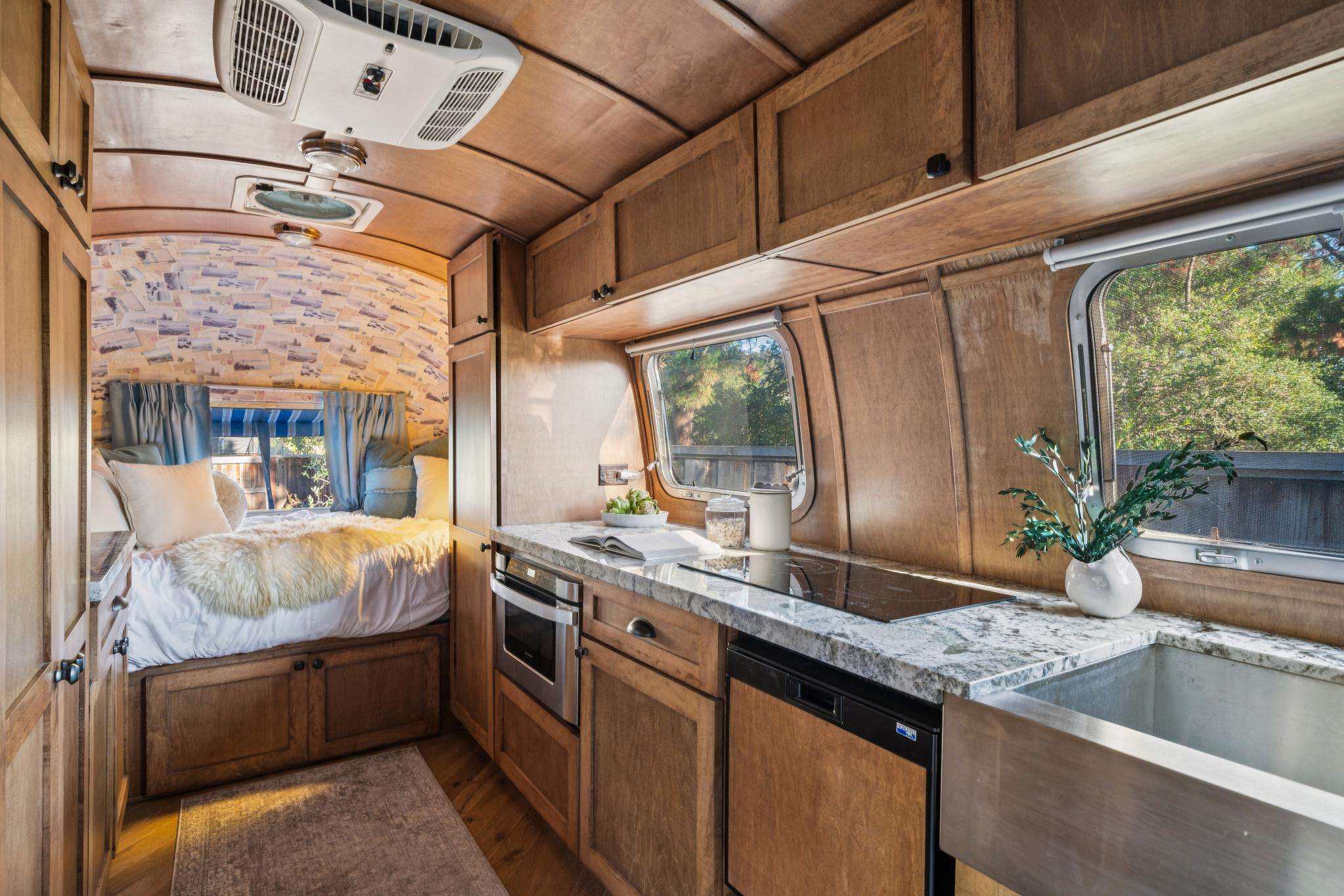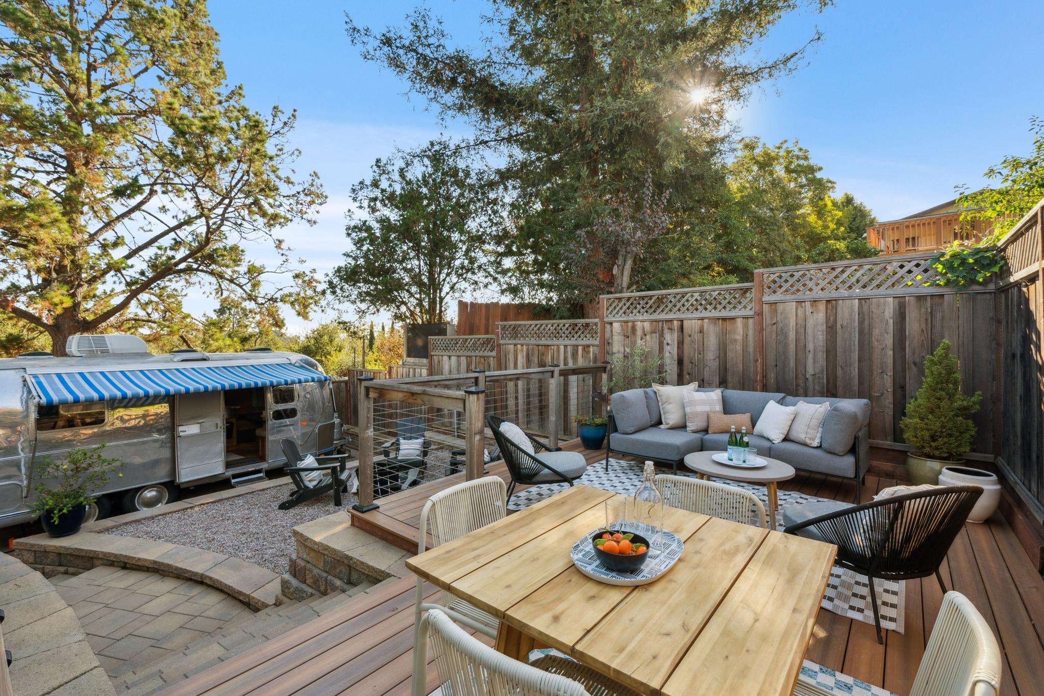 Step outside to the extensively landscaped backyard. The patio area is perfect for outdoor dining and entertaining under the stars. Prepare to be impressed by an authentic, restored Airstream! It comes complete with shower, toilet, kitchenette, refrigerator, and a full-sized bed. It’s ideal for guests, or even a unique home office.